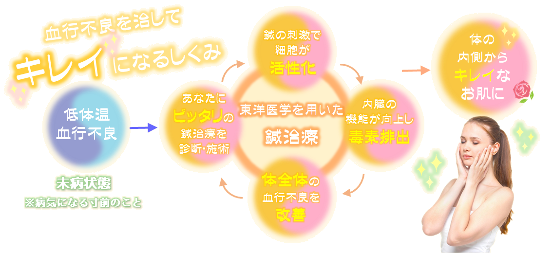 低体温や血行不良は、未病(病気になる一歩手前)の状態です。当院では東洋医学を用いて
