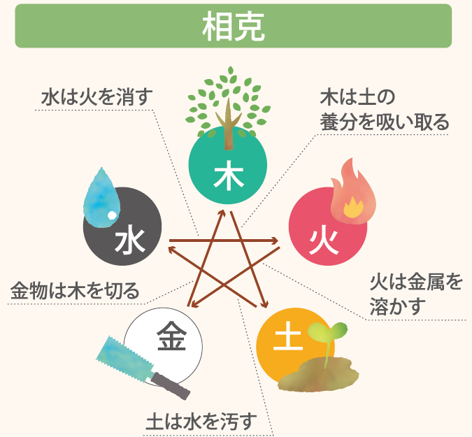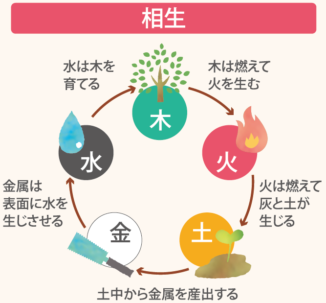 相生関係は母子関係ともいわれ、木が燃えることで火が生まれ、